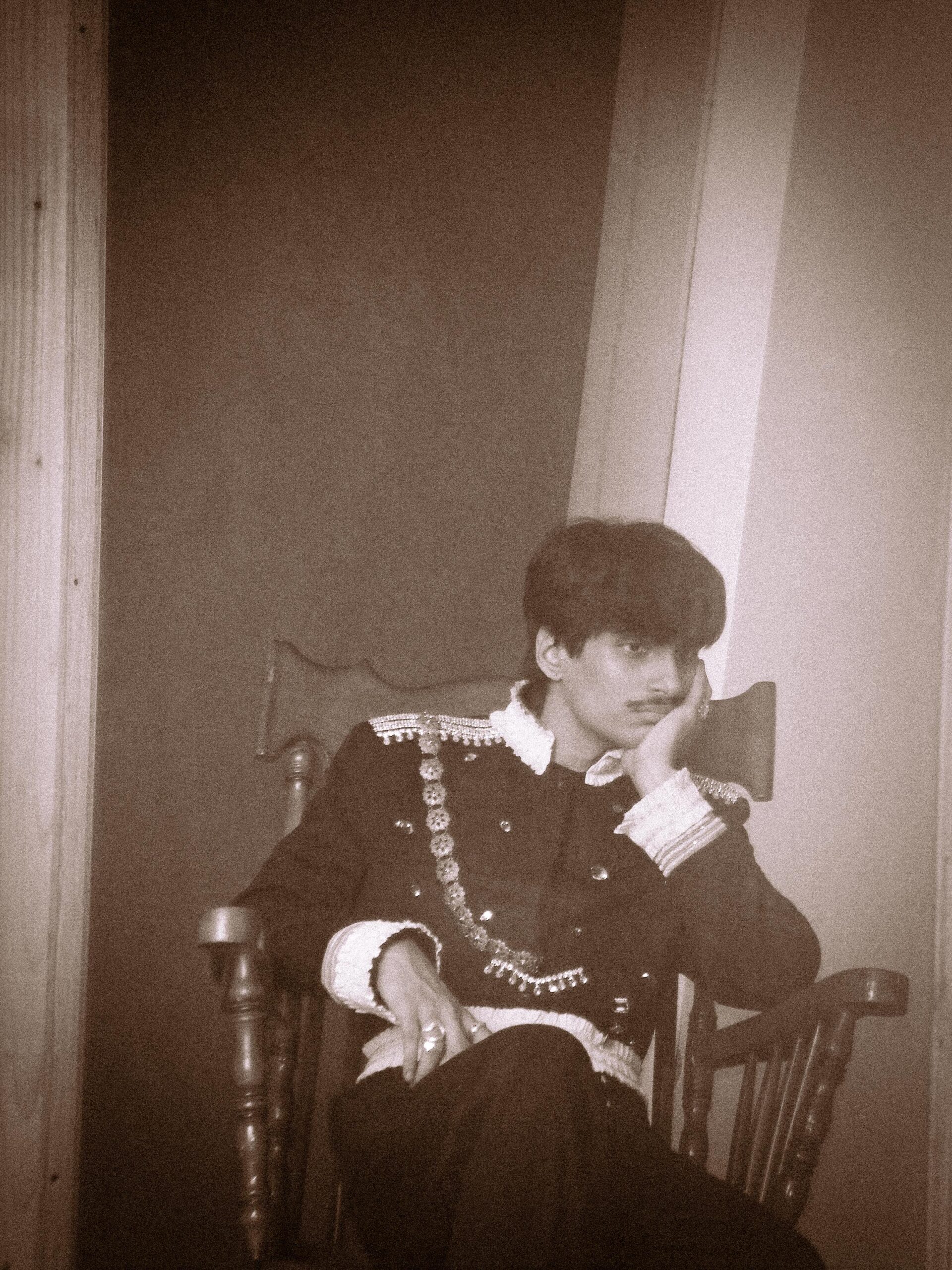 The cover art is a reference to a portrait of Farouk I of Egypt, the hedonistic, controversial ruler of Egypt and Sudan between 1936 and 1952. A press release from the artist informs me, “The cover art of the project is a reinterpretation of an archival portrait of King Farouk of Egypt. Known for his opulence and contradictions, King Farouk’s story, of indulgence, decay, and the weight of perception, mirrors the very themes Farookh wrestles with. But rather than glorifying that image, shauharty subverts it. Bathed in sepia tones, his own gaze carries not arrogance but introspection, the decadence replaced with melancholy, the excess replaced with honesty. The visual, much like the project itself, becomes a metaphor for transformation: the shedding of illusion in pursuit of truth.”